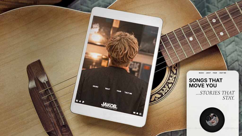 Jakob Mühleisen ist Singer-Songwriter, Geschichtenerzähler und Klangmaler. Seine Musik bewegt sich zwischen Wirklichkeit und Traum, zwischen Zärtlichkeit und Kraft – poetisch, ehrlich und tief. Dieses Spannungsfeld wollten wir auch visuell spürbar machen: eine Website, die klingt, atmet und erzählt.